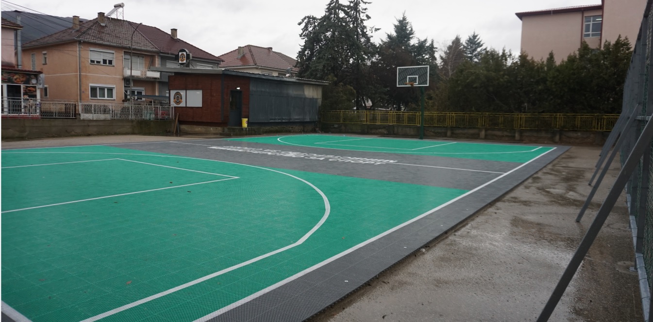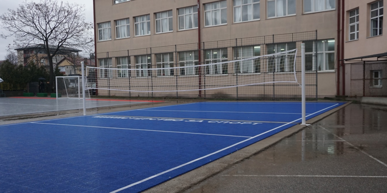 Во рамки на современо уредениот простор за спорт и рекреација изградени се игралиште за фудбал и ракомет, кошаркарски и одбојкарски терени, како и трибина. Спортските терени се од отворен тип и се наменети првенствено за потребите на учениците од струмичката гимназија, но и за сите граѓани кои сакаат активно да го користат слободното време.