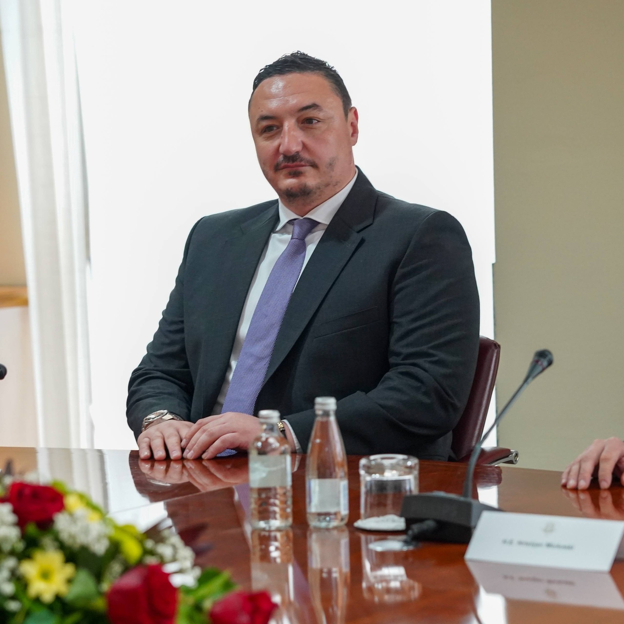 Заедно со првиот човек на европскиот фудбал, во делегацијата на УЕФА се и Зоран Лаковиќ, директор за национални асоцијации во УЕФА, како и Денис Бастари, раководител за развој на национални асоцијации во УЕФА.