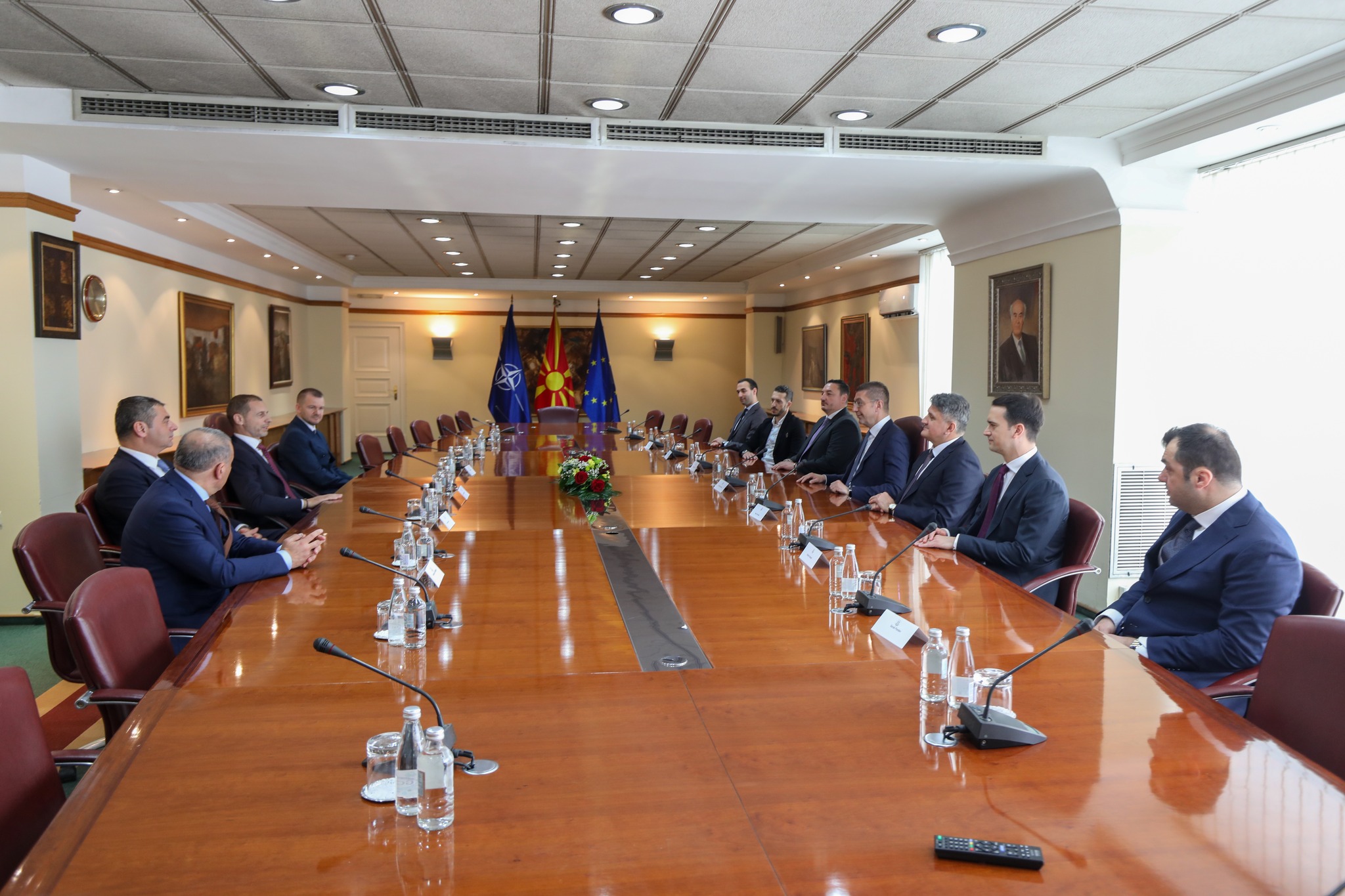 Министерот за спорт Борко Ристовски заедно со премиерот Христијан Мицкоски, денеска во Владата оствари средба со претседателот на УЕФА, Александар Чеферин кој е во официјална посета на Македонија, на покана на претседателот на ФФМ, Масар Омерагиќ. На средбата се разговараше за идните насоки за унапредување на фудбалот во Македонија, од реализација на значајни инфраструктурни проекти, до дополнителен развој и поддршка на младинските категории.